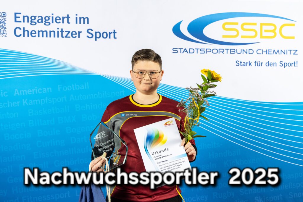 Unser Schüler Paul Werner wurde im Rahmen der 15. Chemnitzer Sportjugend-Ehrung am 28.03.2026 als einer von drei Nachwuchssportlern des Jahres 2025 ausgezeichnet.
