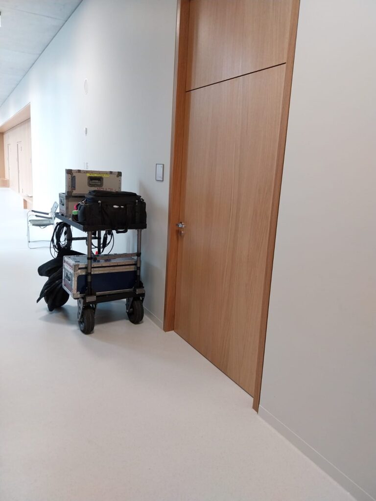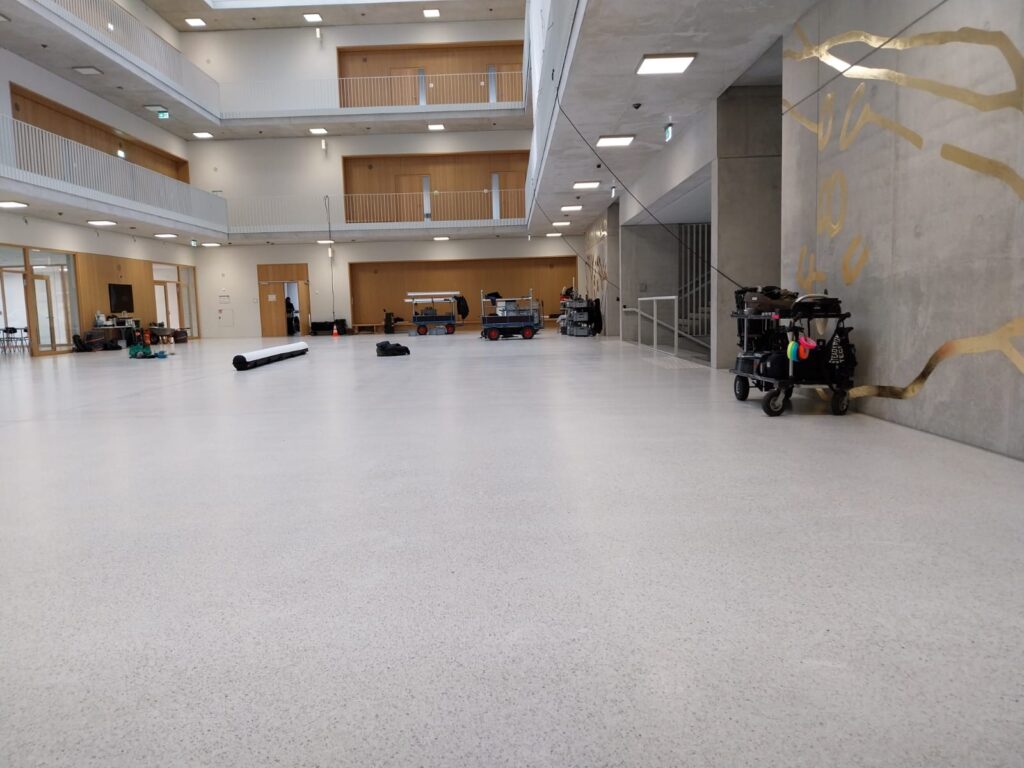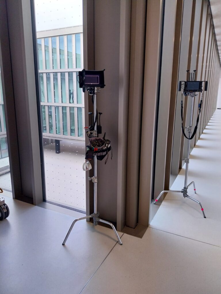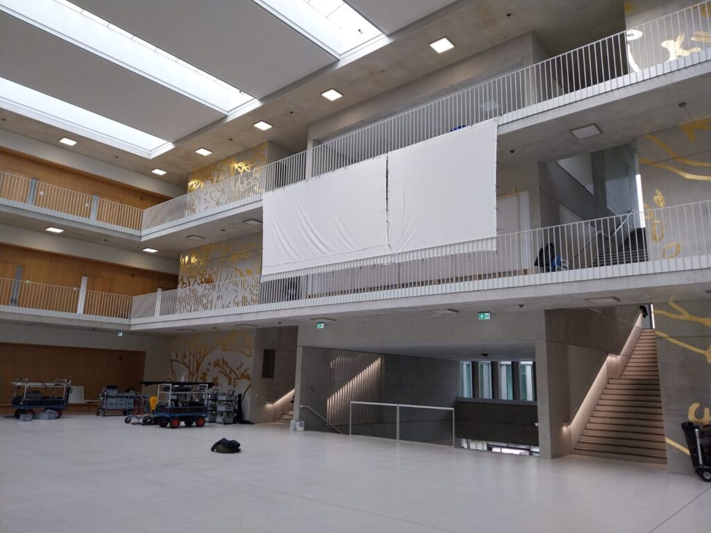 Am Samstag zeigte sich in der Oberschule Am Hartmannplatz ein ungewohntes Bild: Statt Schülerinnen und Schülern waren zahlreiche Visagisten, Schauspieler, Kamerateams und Bühnenbauer im Schulhaus anzutreffen. Ein international besetztes Filmprojekt, in dem mehrere Produktionsfirmen eingebunden sind, hat sich das moderne Schulgebäude als Kulisse für einen Science-Fiktion Film ausgesucht und verbrachte einen Drehtag in der Oberschule Am Hartmannplatz. Die Produktion soll zunächst in den nordeuropäischen Kinos zu sehen sein. Weitere Informationen finden Sie  hier: The Squirrel Ι Bufo.