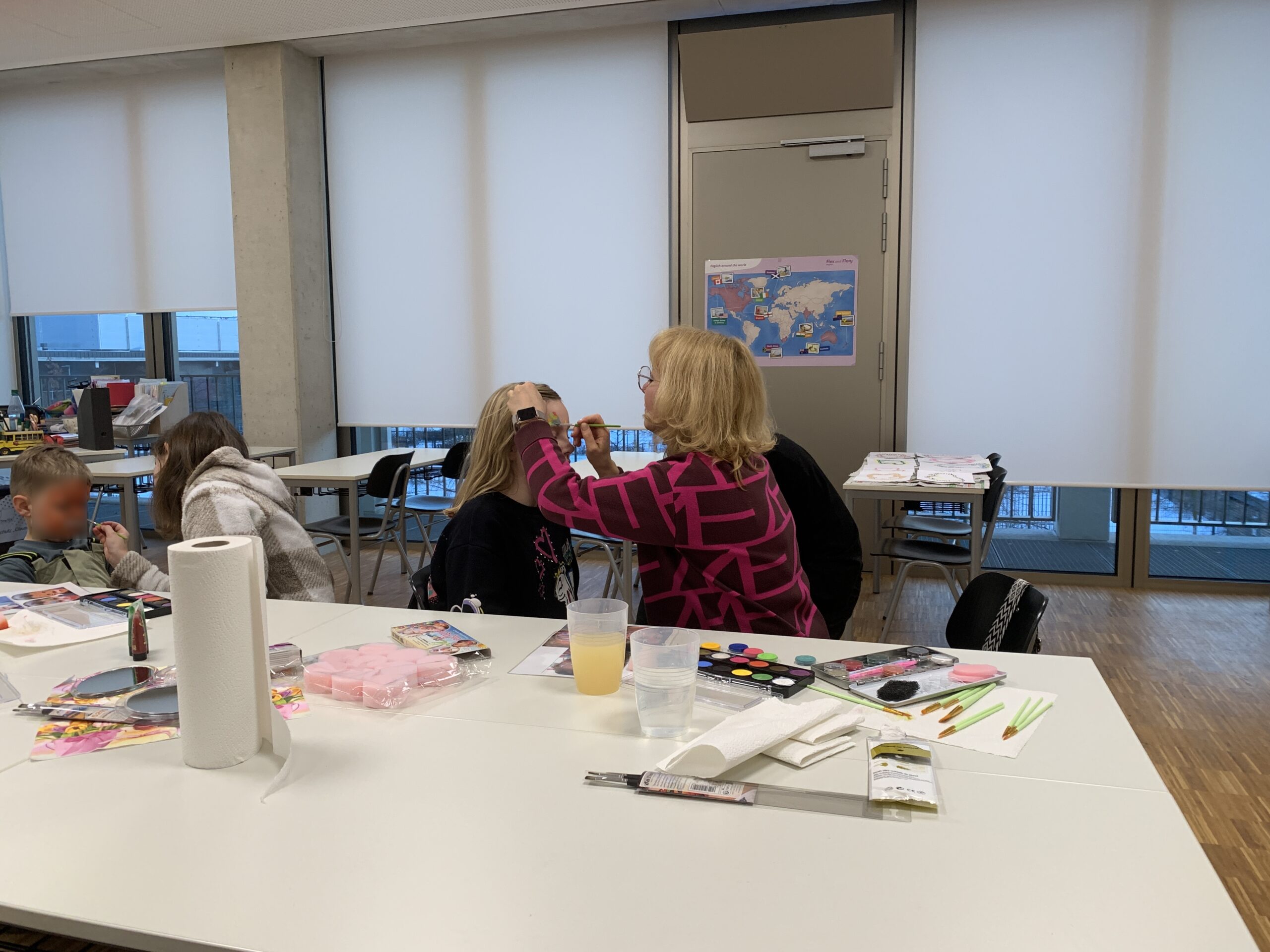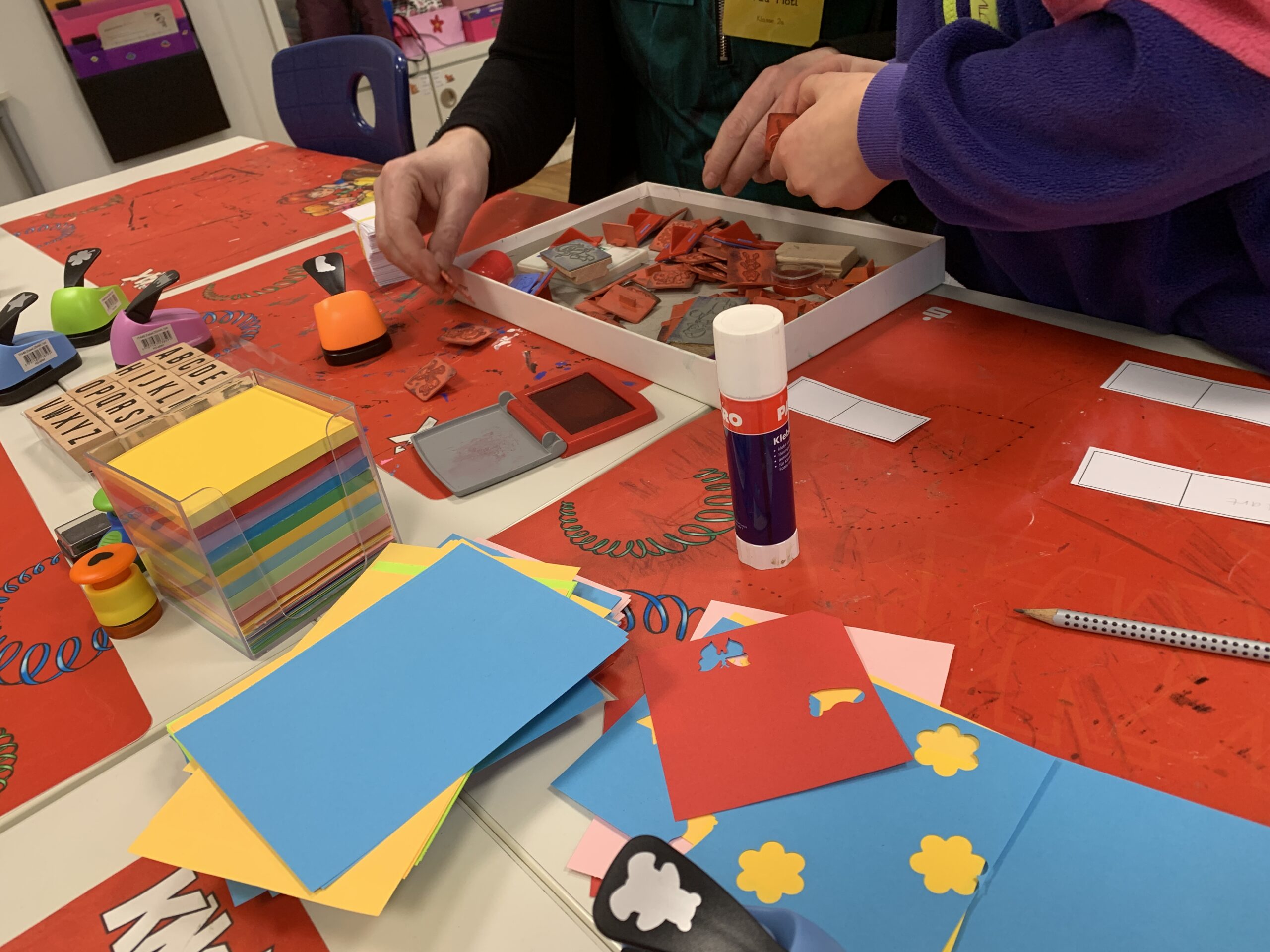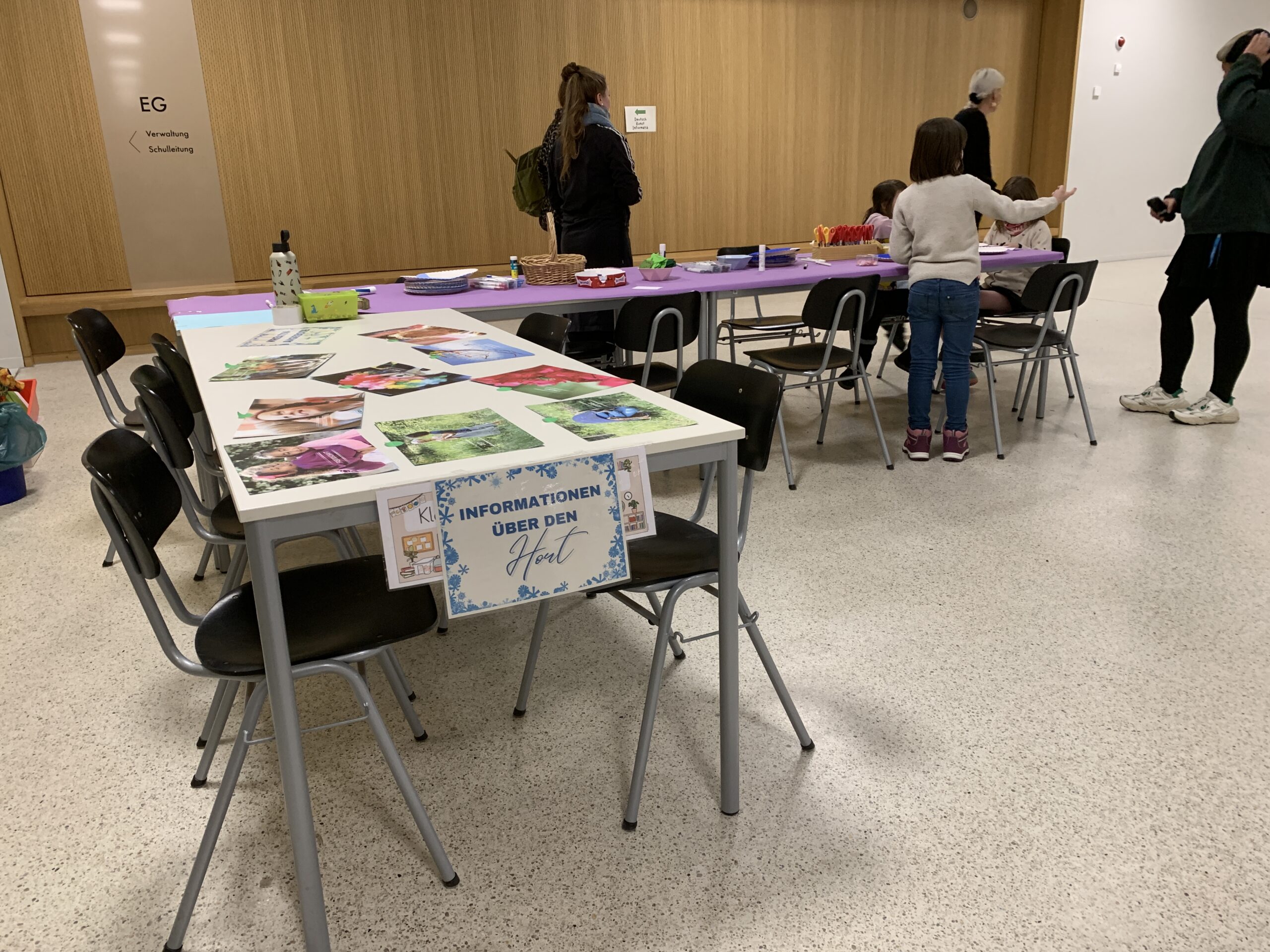 Auch die Grundschule beteiligte sich aktiv: Eine Schulhausrallye führte durch die Räume der Grundschule, die jeweils nach den Bedürfnissen der einzelnen Klassen gestaltet sind. Zu den Angeboten gehörten Kinderschminken, das Stempeln eines Dominospiels, das Herstellen eines Daumenkinos und ein Einblick in ein Klassenzimmer der 1. Klasse mit Rechenangeboten für Vor- und Grundschüler. Der Hort ergänzte das Programm mit einem Bastelstand. Zudem stellte sich die Schulsozialarbeit der Grund- und Oberschule vor und informierte über Gemeinsamkeiten und Unterschiede in ihrer unterstützenden Arbeit.
